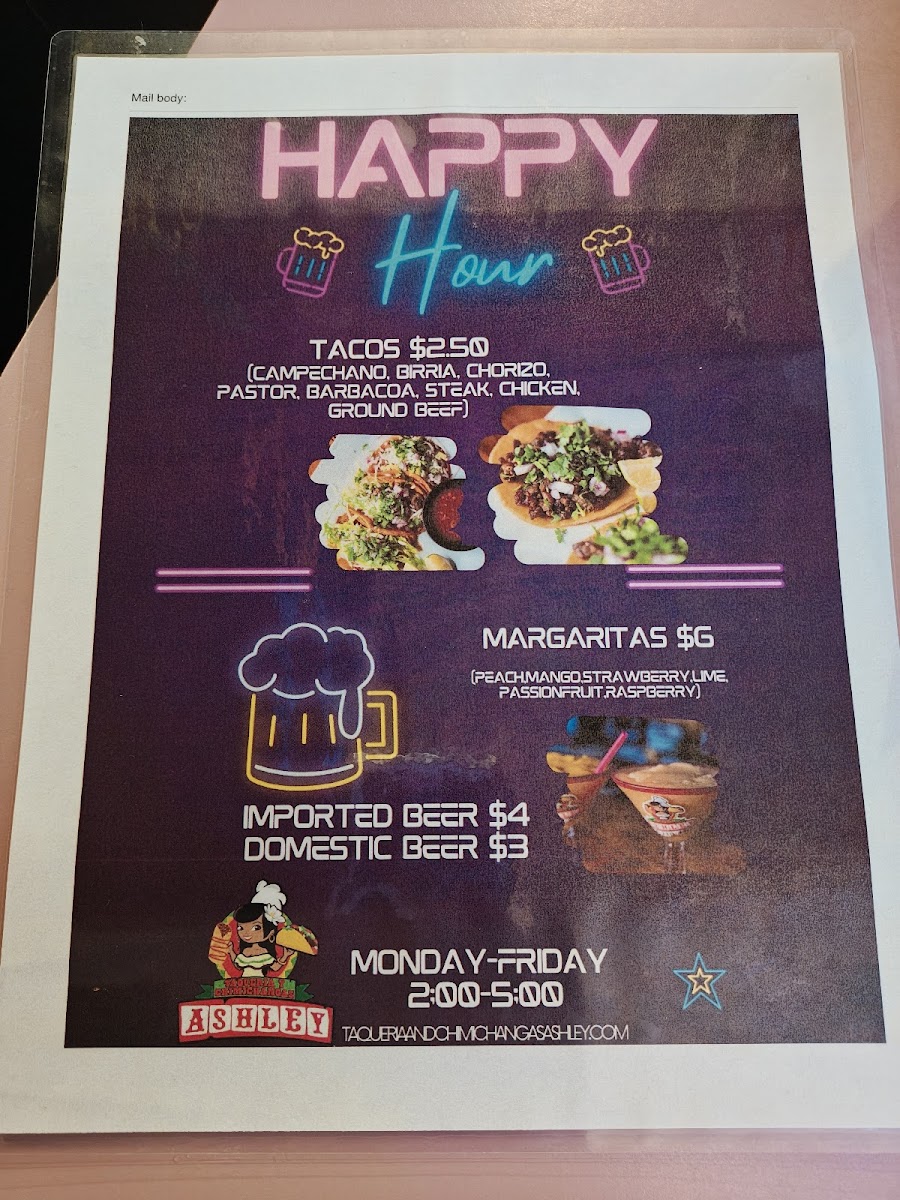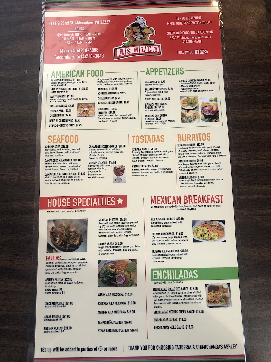 Overall, Ashley's menu offers a wide array of flavorful dishes, combining the best of Mexican cuisine with familiar American favorites, making it an excellent choice for any time of day.